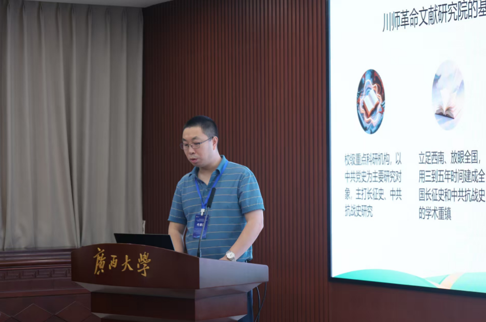 在随后的研讨环节,与会专家学者围绕项目翻译与出版工作展开深入交流。于文杰介绍了外文史料现状和研究价值,并提出当前面临的挑战。四川师范大学革命文献研究院执行院长范国平从翻译规划和学术规范角度作说明,强调分工协作与高质量成果产出;邓联健表示,译者需具备敏感度和责任感,注重译前准备与“回译”;北京外国语大学国际中国文化研究院副院长管永前强调发挥北外多语种优势和海外汉学经验;广西大学外国语学院教授彭程结合日本档案翻译经验,分享文献辨识与理解的难点;西北大学丝绸之路研究院副院长席会东介绍其团队的丝路研究基础和未来展望。